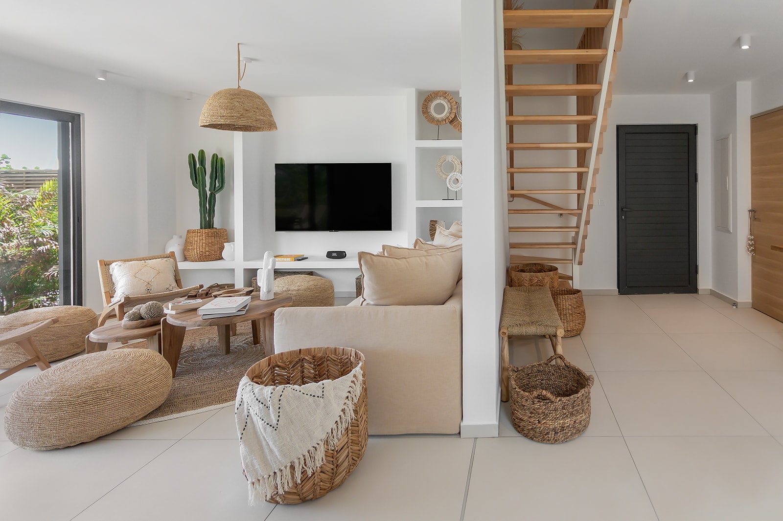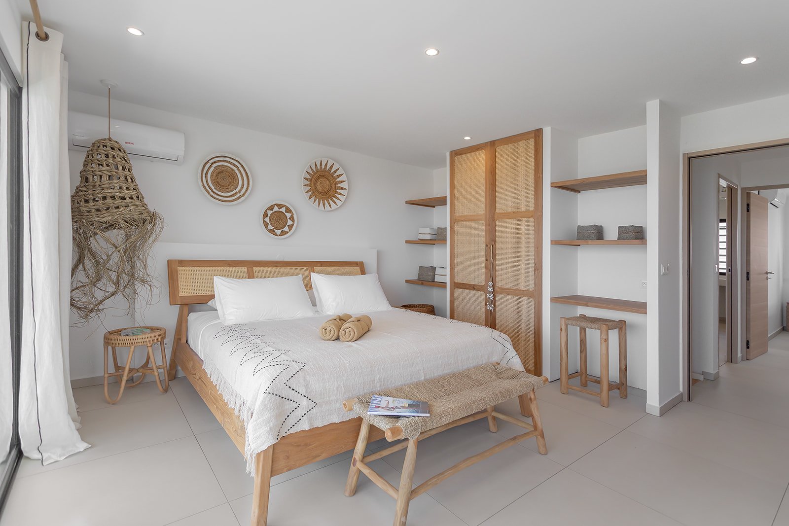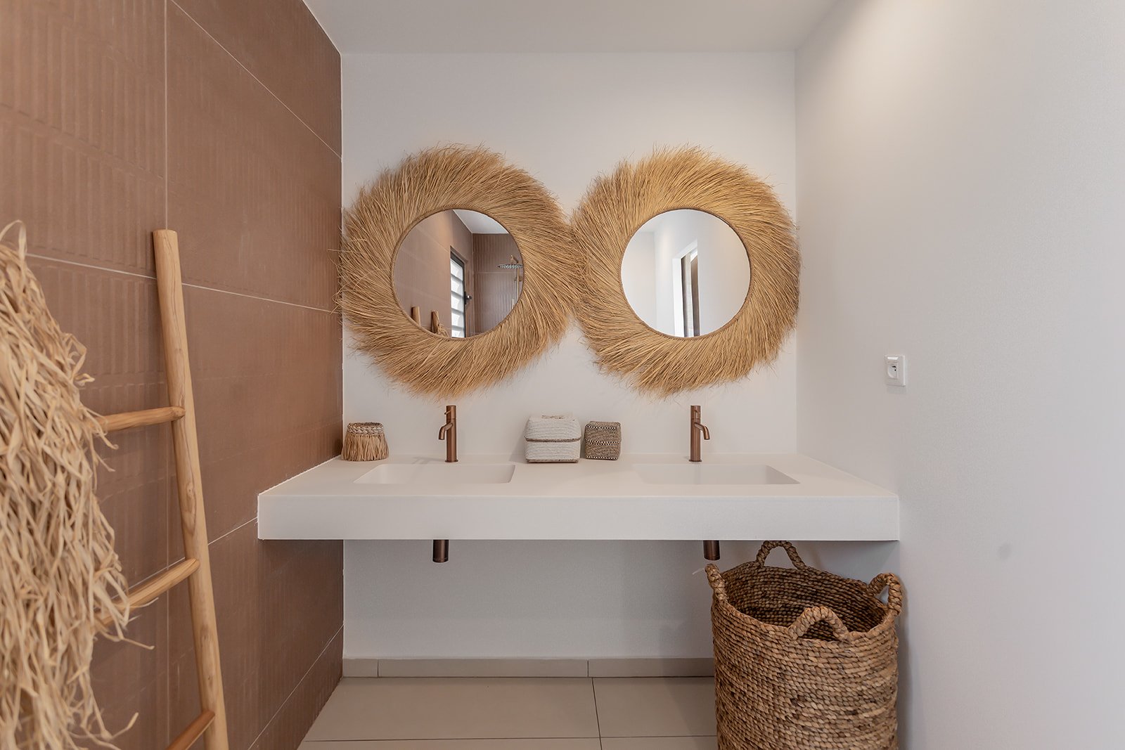 Trois chambres élégantes, pensées comme de véritables suites privées, où confort et intimité sont à l’honneur. Chacune dispose de sa propre salle de bain raffinée et d’un dressing spacieux, pour un quotidien pratique et serein. Les matériaux nobles, le linge de lit de qualité et la décoration soignée créent une atmosphère douce et reposante, propice au lâcher-prise. Pour une nuit paisible après une journée ensoleillée, ces chambres sont de véritables havres de tranquillité, invitant à la détente et au bien-être.