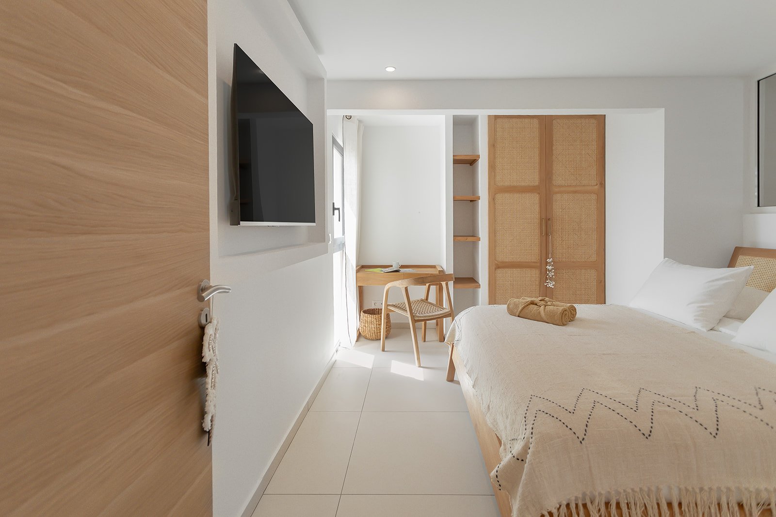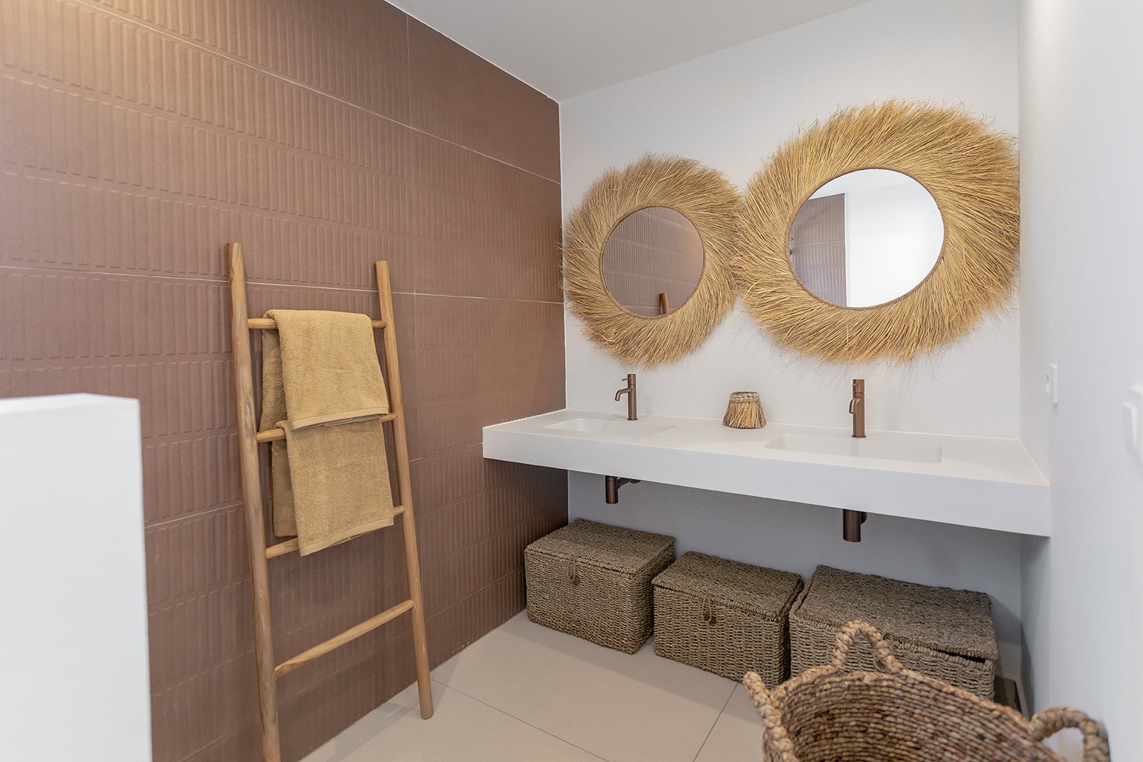 Trois chambres élégantes, pensées comme de véritables suites privées, où confort et intimité sont à l’honneur. Chacune dispose de sa propre salle de bain raffinée et d’un dressing spacieux, pour un quotidien pratique et serein. Les matériaux nobles, le linge de lit de qualité et la décoration soignée créent une atmosphère douce et reposante, propice au lâcher-prise. Pour une nuit paisible après une journée ensoleillée, ces chambres sont de véritables havres de tranquillité, invitant à la détente et au bien-être.