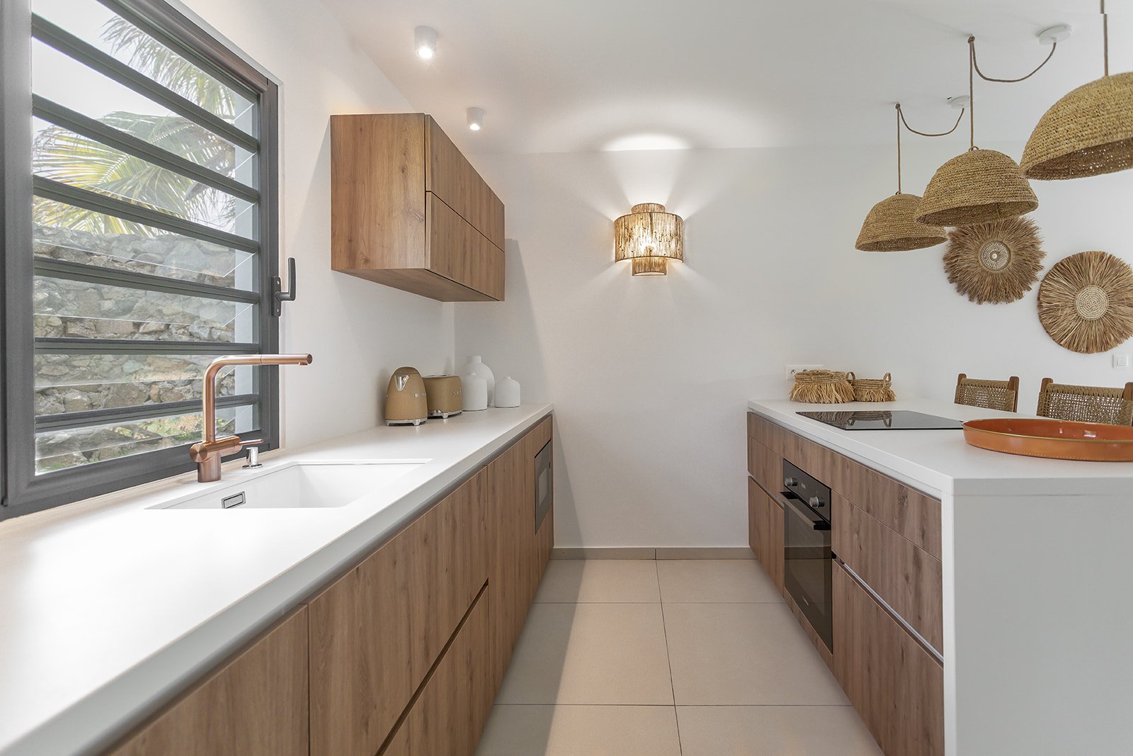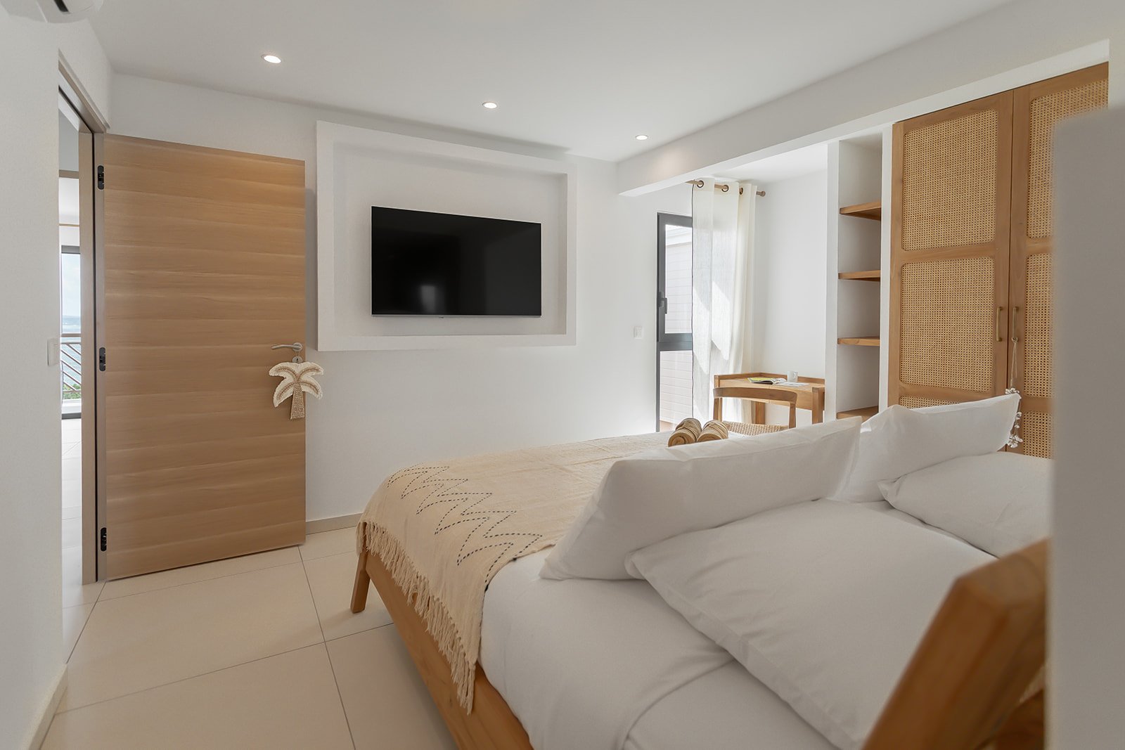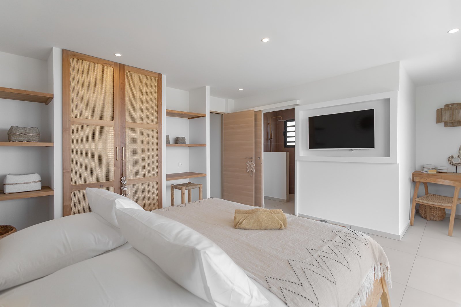 À quelques pas de la mer, dans un environnement paisible, la villa Baya. Fraîchement rénovée en 2025, la villa Baya offre une parenthèse élégante entre ciel et mer, en deuxième ligne face à l’océan, donnant une vue dégagée sur celui-ci. Spacieuse, baignée de lumière et pensée dans un esprit résolument chaleureux, c’est un lieu rare où chaque détail à été imaginé pour conjuguer confort, sérénité et art de vivre Caribéen.