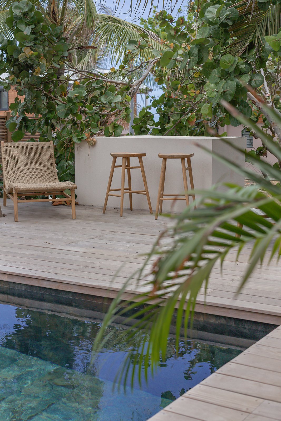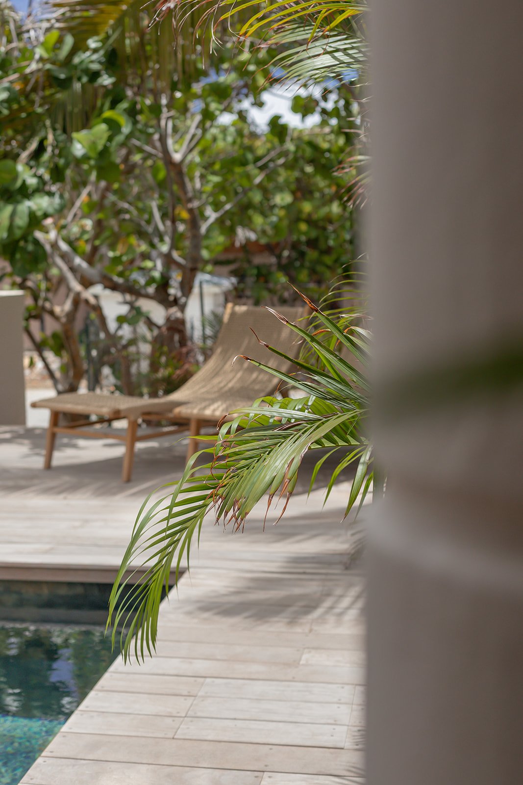 Les extérieurs de la Villa Coco sont une véritable invitation à la douceur de vivre. Nichée dans un écrin de verdure, encadrée par deux magnifiques cocotiers, la maison bénéficie d’une partielle sur la mer, offrant un spectacle apaisant à chaque instant de la journée. La végétation environnante, luxuriante et soigneusement entretenue, apporte une belle sensation de fraîcheur et d’intimité. Au cœur du jardin, une piscine privative scintille sous le soleil, idéale pour se rafraîchir ou simplement se détendre. Un salon extérieur ombragé et un bar complètent ce cadre idyllique, parfait pour lire, partager un apéritif ou profiter d’un moment de calme en fin de journée. Un véritable havre de paix entre ciel, mer et nature.