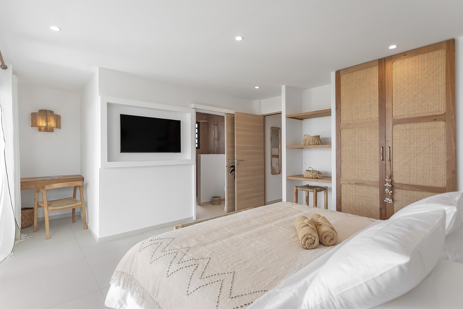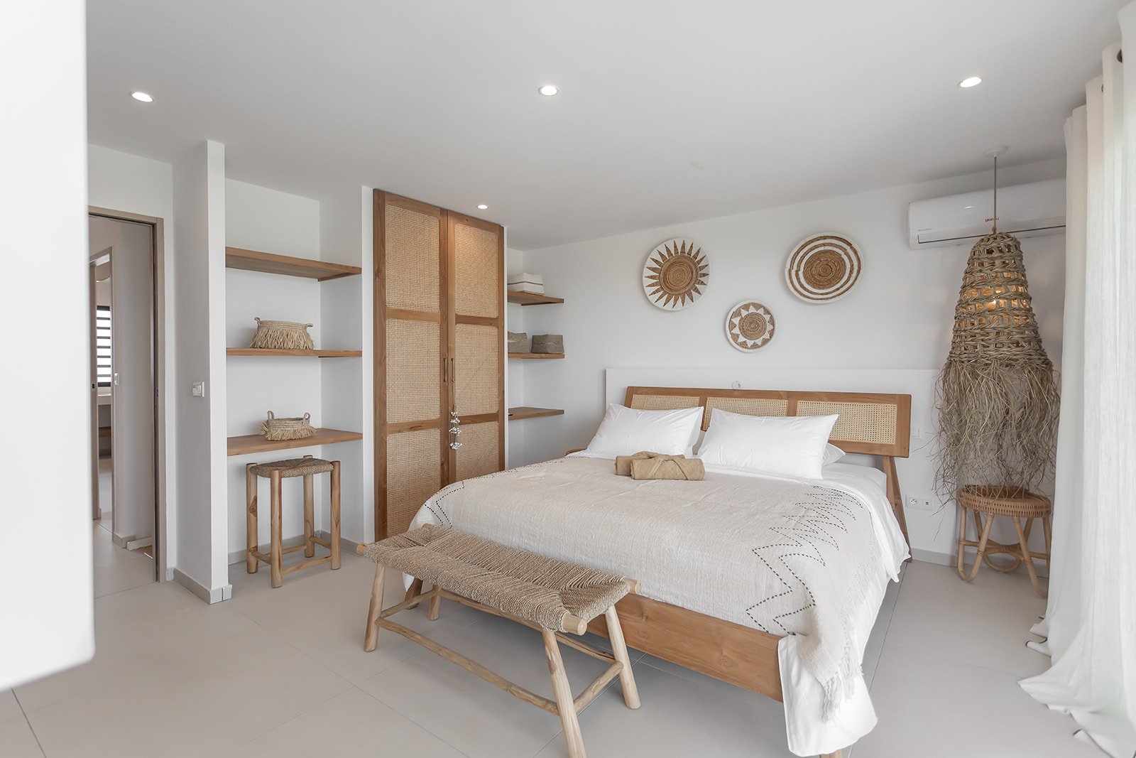 Trois chambres élégantes, pensées comme de véritables suites privées, où confort et intimité sont à l’honneur. Chacune dispose de sa propre salle de bain raffinée et d’un dressing spacieux, pour un quotidien pratique et serein. Les matériaux nobles, le linge de lit de qualité et la décoration soignée créent une atmosphère douce et reposante, propice au lâcher-prise. Pour une nuit paisible après une journée ensoleillée, ces chambres sont de véritables havres de tranquillité, invitant à la détente et au bien-être.